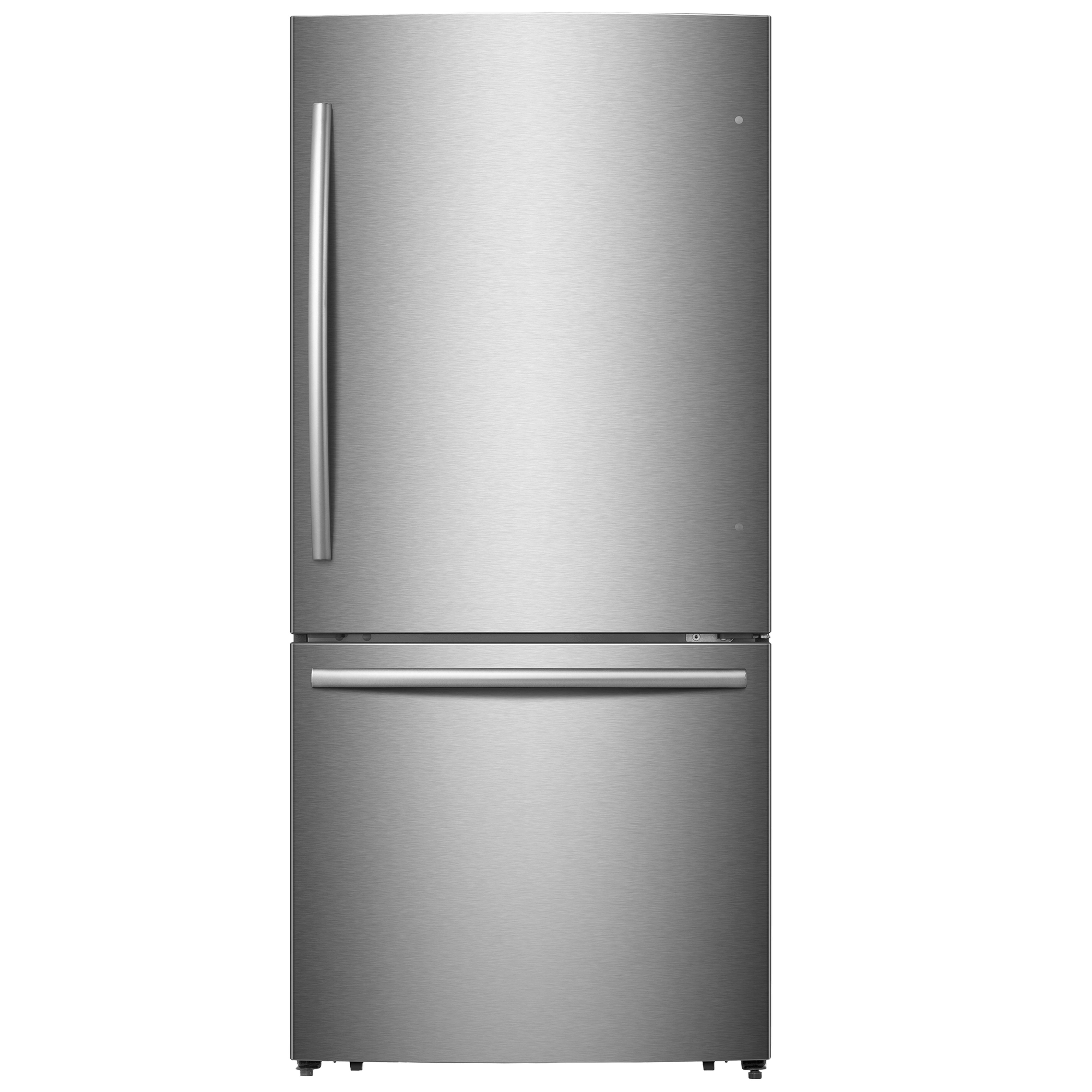 The Hisense 17.2 cu. ft. bottom-mounted refrigerator provides ample food storage space. A slim, modern design that fits into 33-inch-wide spaces. Just right for kitchens with limited floor space. A full-width pantry drawer is ideal for deli & cheese storage. Gallon-size door bins provide easy access to milk and beverage containers. Two fullwidth freezer drawers make it easy to organize your frozen foods.Read More